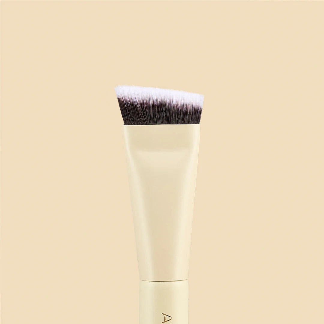 La brocha biselada para contorno Atenea tiene un diseño pequeño, delgado y angular, lo que la hace perfecta para trabajar zonas que requieren máxima precisión, como el contorno de la nariz. Su corte permite definir sin exagerar, logrando un efecto natural y bien estructurado, tanto con productos en polvo como en crema.