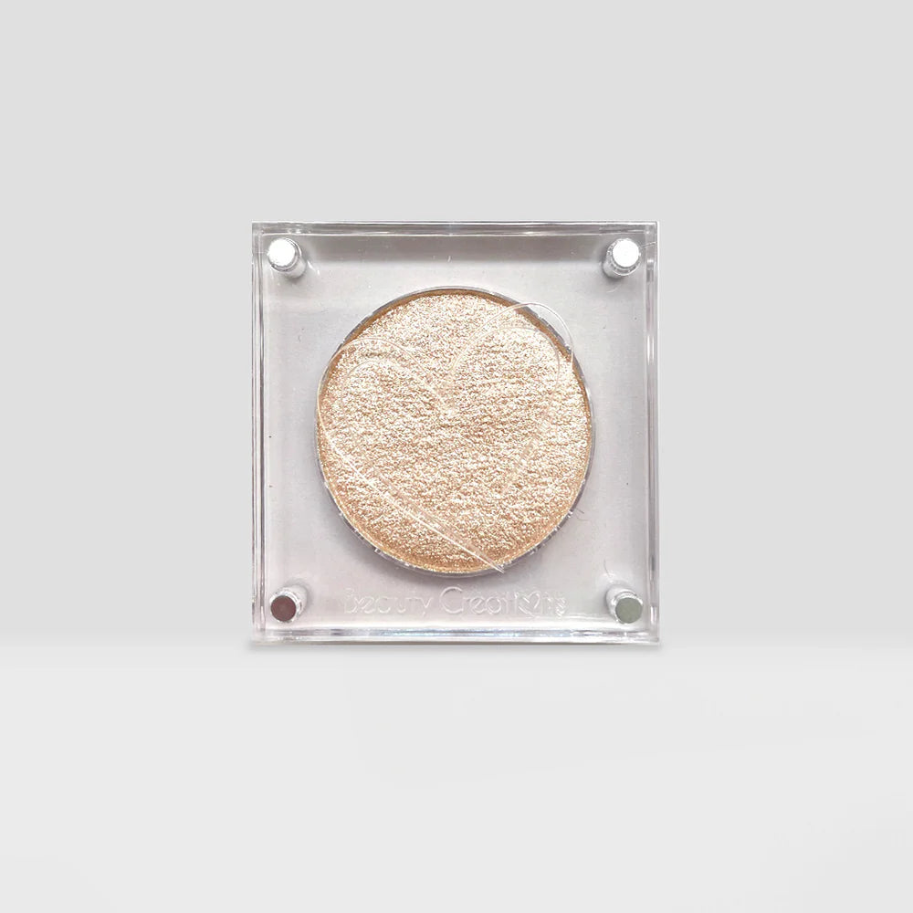 • COSMIC DOLLY: Un shimmer rosa suave con destellos morados y dorados que se desliza con suavidad en los párpados.